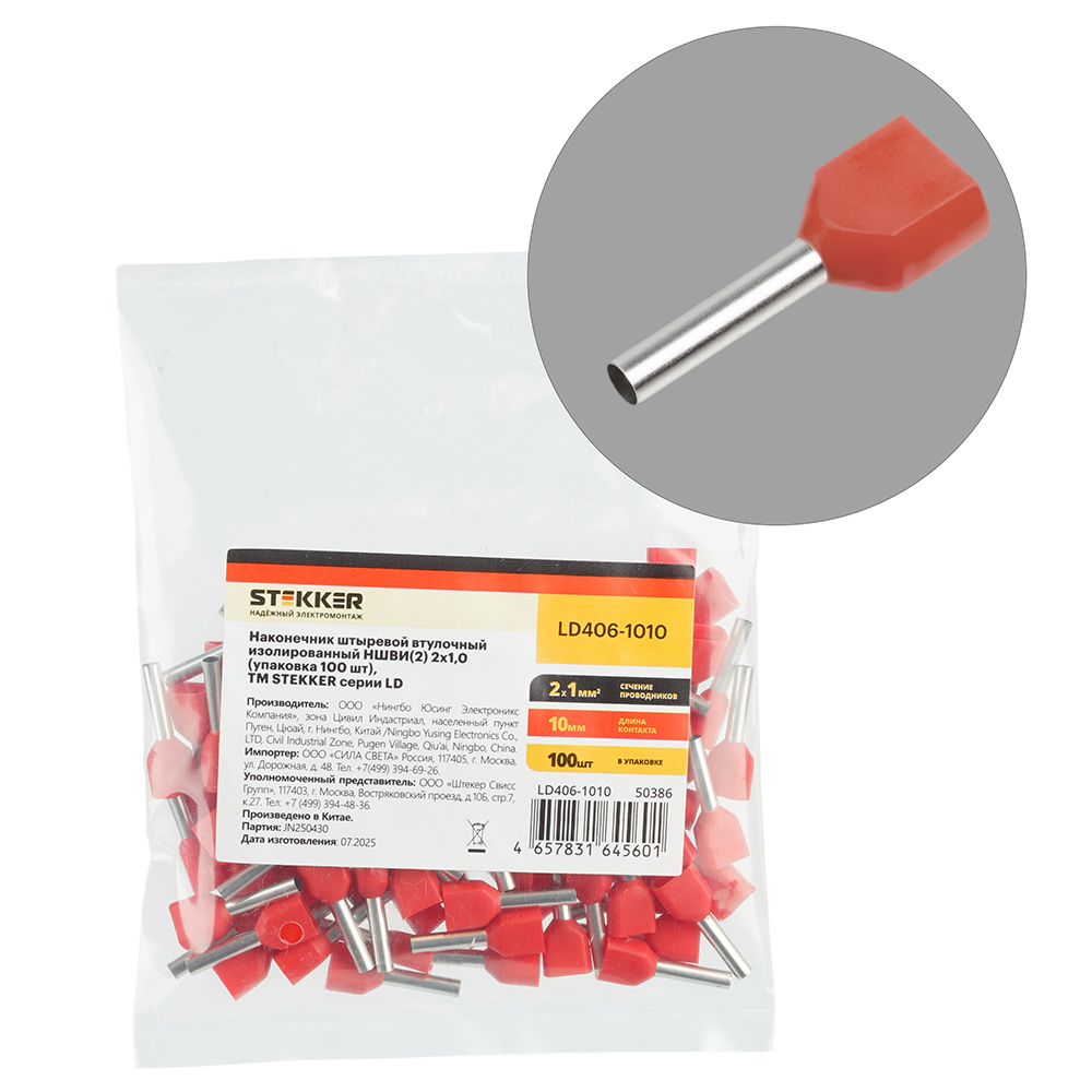 LD406-1010 Наконечник штыревой втулочный изолированный НШВИ(2) 1,0-10 (упаковка 100 шт)