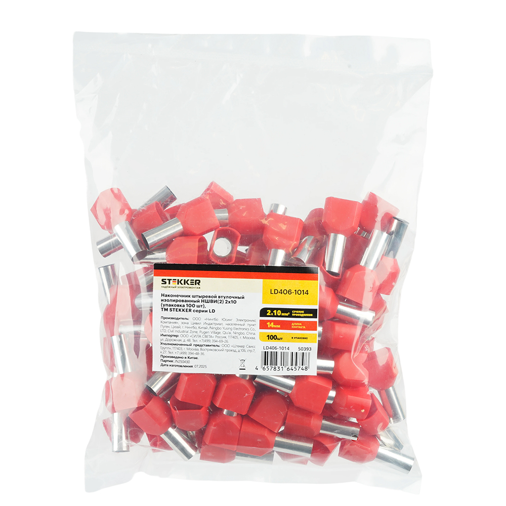LD406-1014 Наконечник штыревой втулочный изолированный НШВИ(2) 10-14 (упаковка 100 шт)