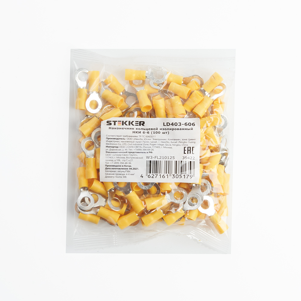 Наконечник Кольцевой Изолированный STEKKER; М6 4-6 - 0,6 мм; , латунь, поливинилхлорид (PVC), желтый