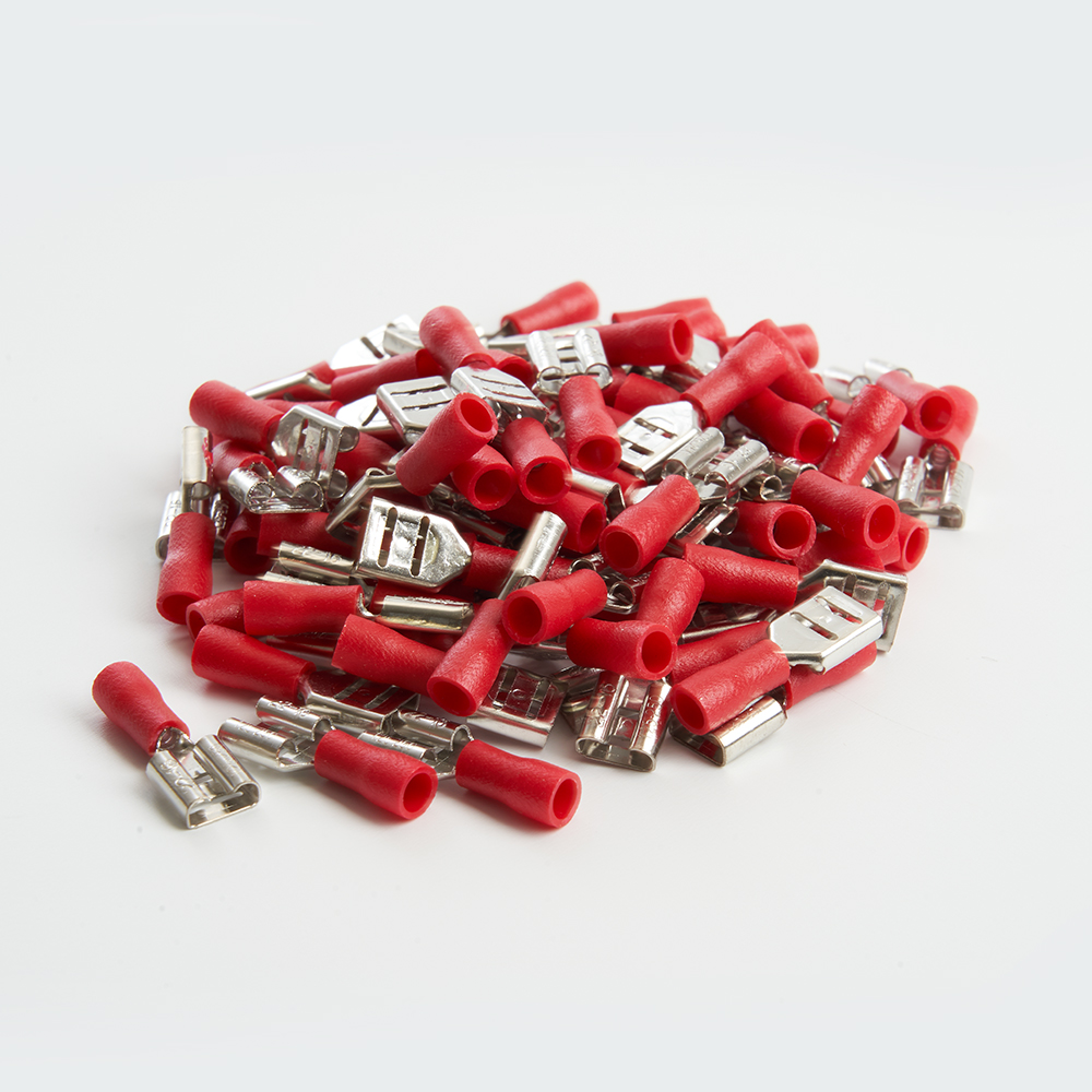 Наконечник плоский Изолированный мама STEKKER; 0,5-1,5 - 0,8 мм; 6,35 мм, латунь, поливинилхлорид (PVC), красный