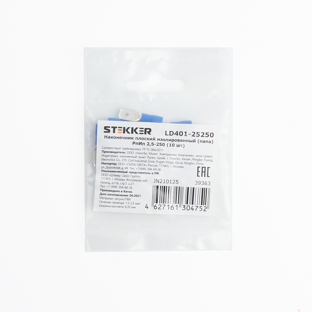 Наконечник плоский Изолированный (папа) РпИп 1,5 – 2,5, STEKKER, LD401-25250 (DIY упаковка 10 шт)
