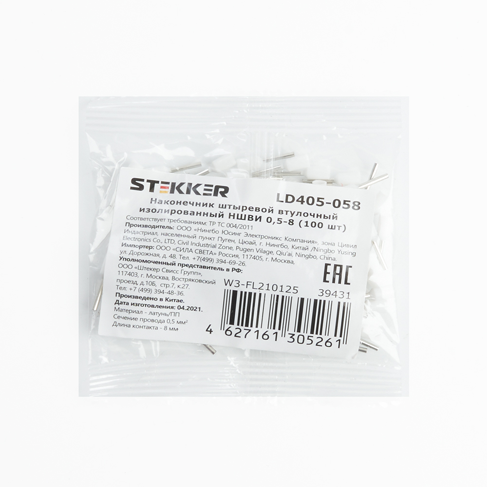 Наконечник Штыревой Втулочный Изолированный STEKKER; 0,5 - 8 мм-; , латунь, полипропилен (PP), белый