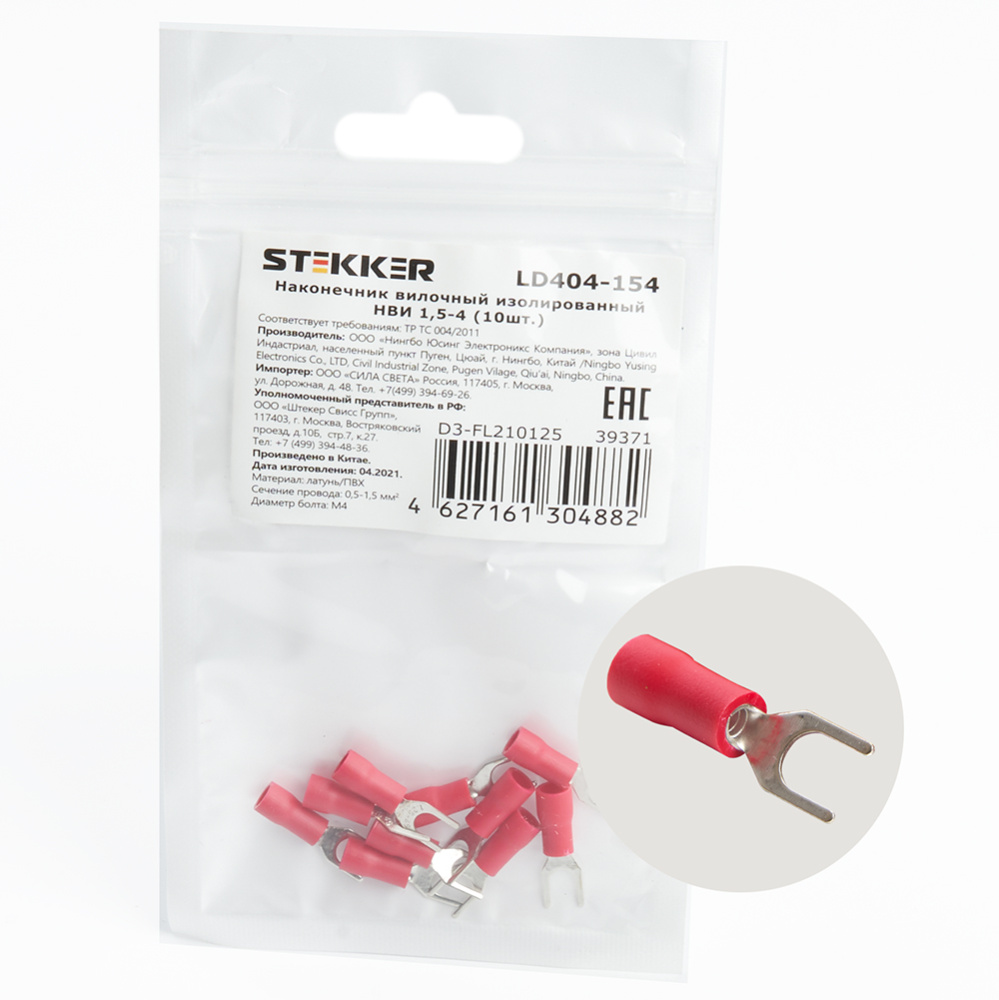 Наконечник Вилочный Изолированный STEKKER; М4 0,5-1,5 - 0,6 мм; , латунь, поливинилхлорид (PVC), красный