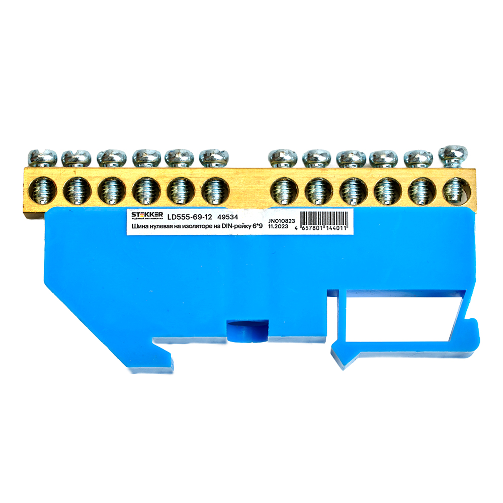 Шина"N" на изоляторе STEKKER 6*9 на DIN-рейку 12 выводов, синий, LD555-69-12