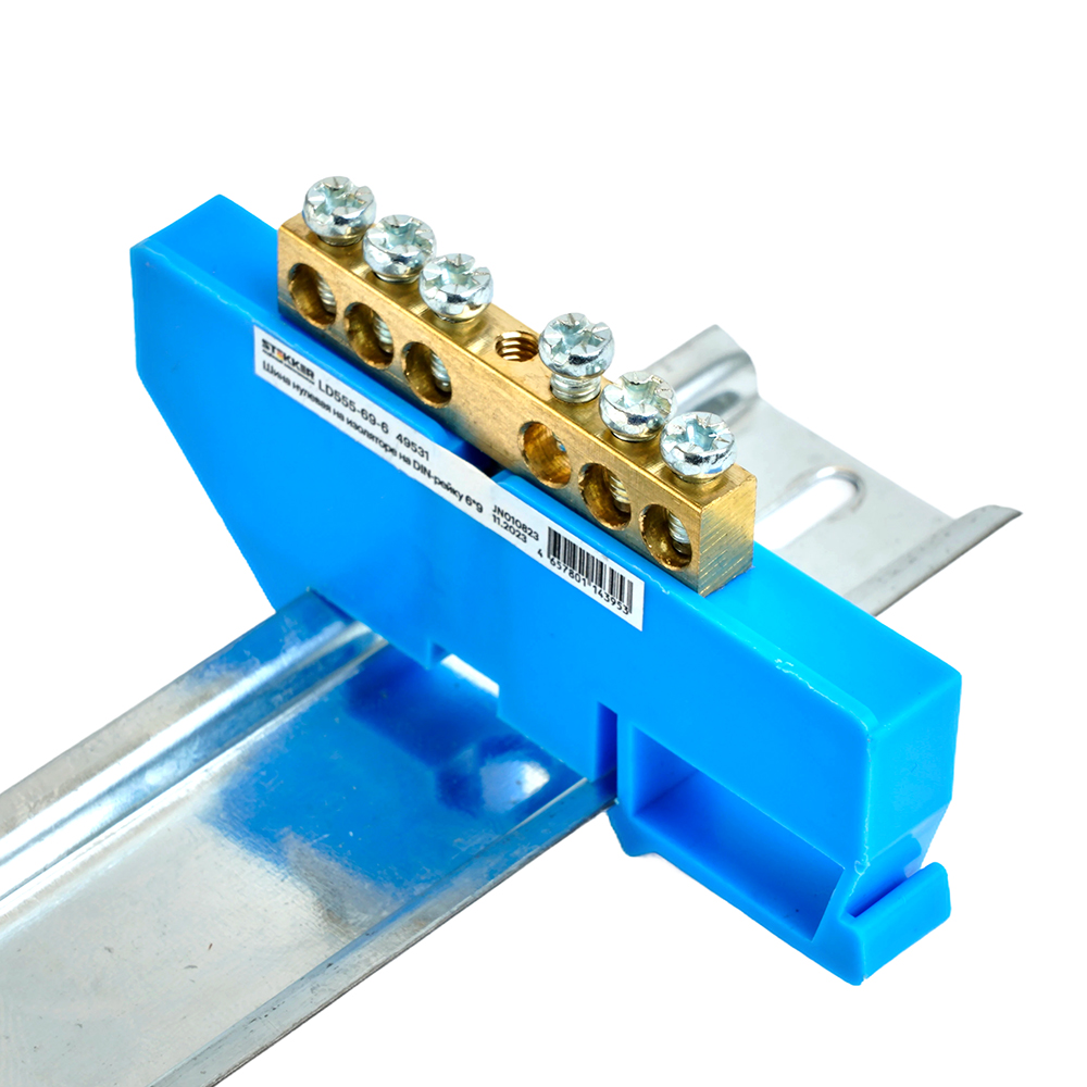 Шина"N" на изоляторе STEKKER 6*9 на DIN-рейку 6 выводов, синий, LD555-69-6
