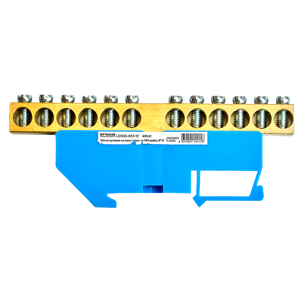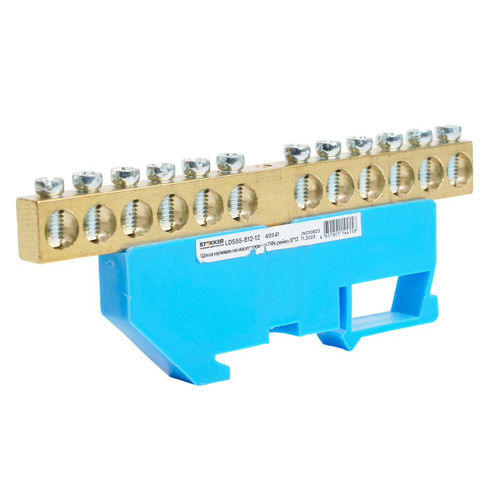Шина"N" на изоляторе STEKKER 8*12 на DIN-рейку 12 выводов, синий, LD555-812-12