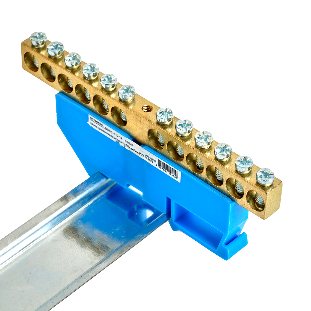 LD555-812-12 Шина "N" на изоляторе 8*12 на DIN-рейку 12 выводов, синий
