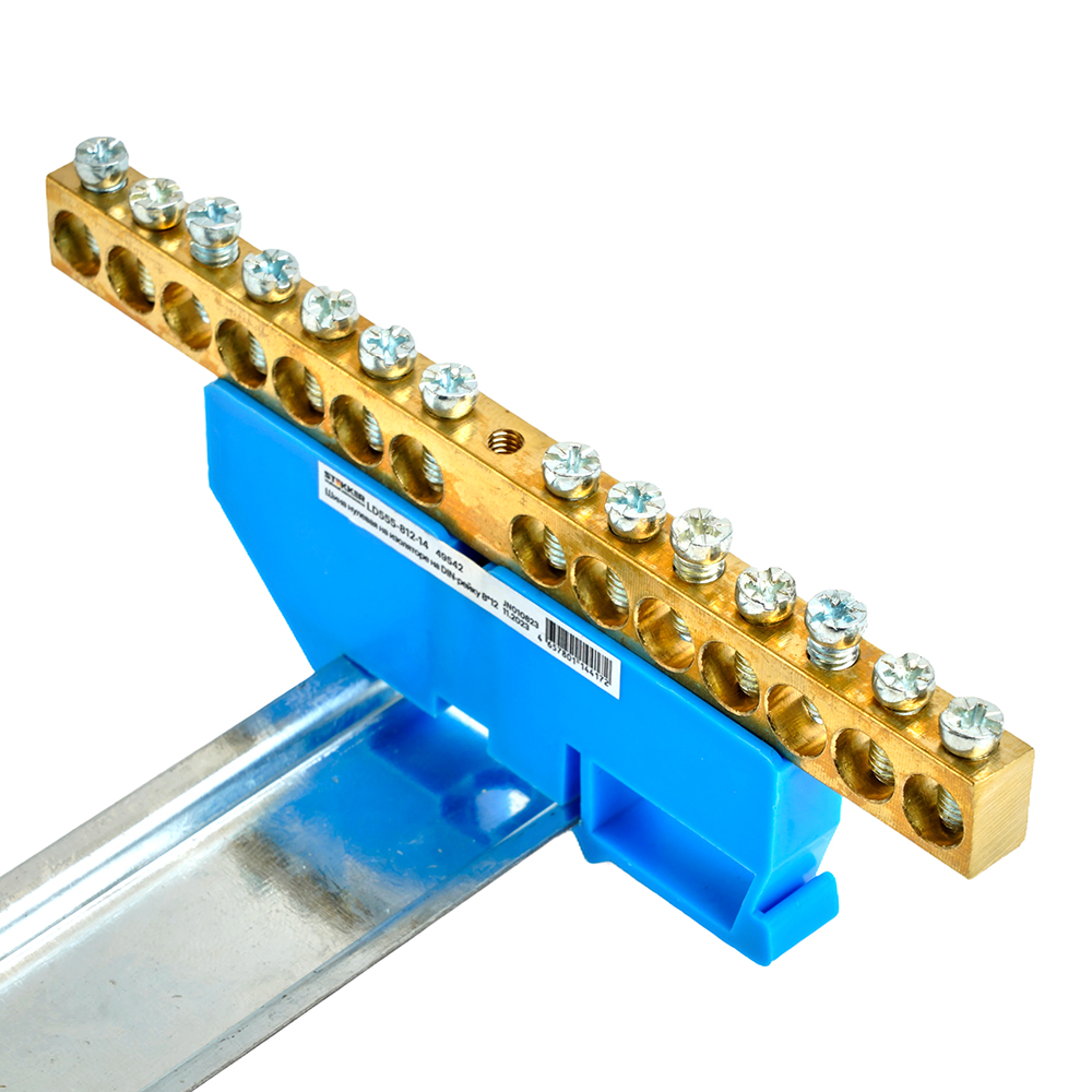 LD555-812-14 Шина "N" на изоляторе 8*12 на DIN-рейку 14 выводов, синий