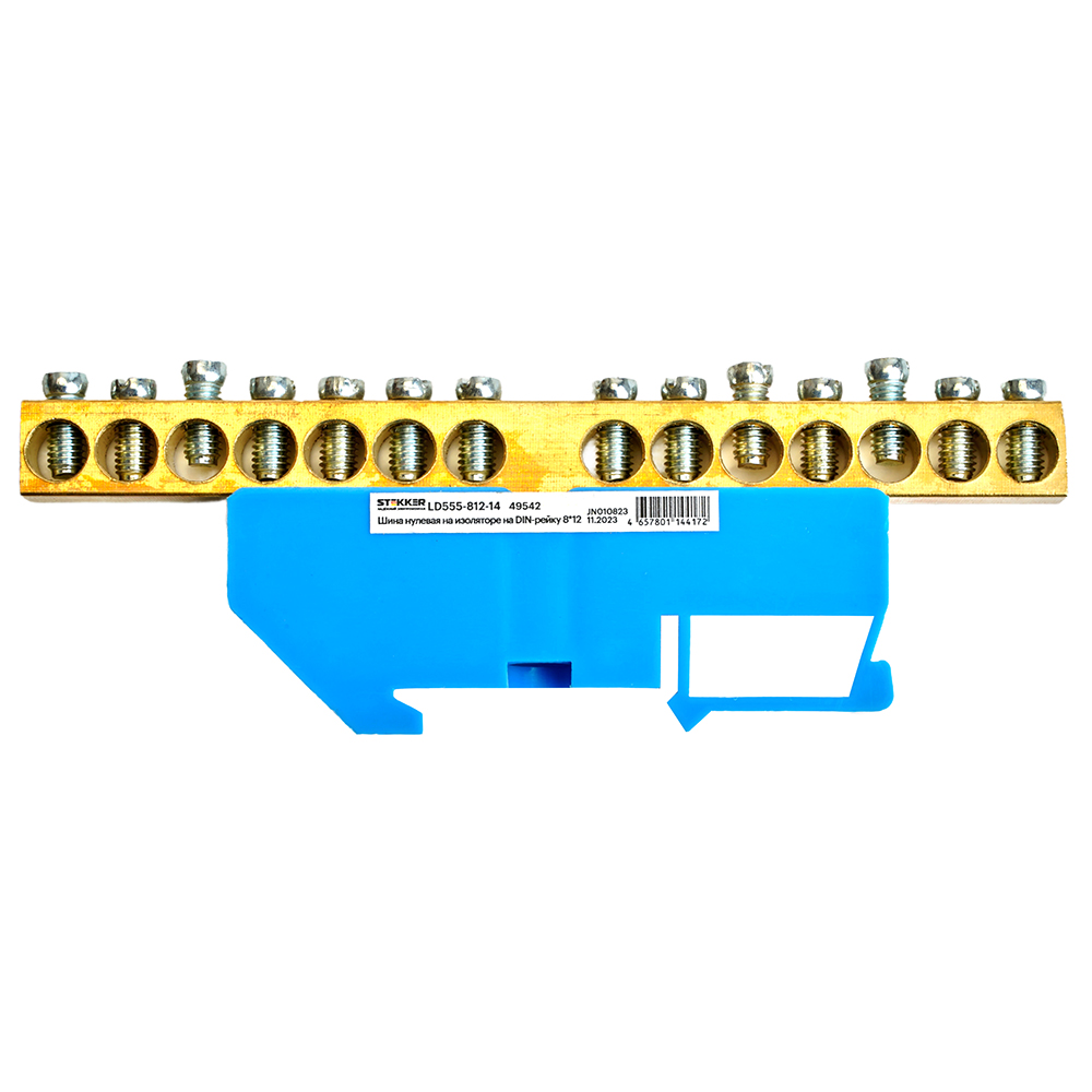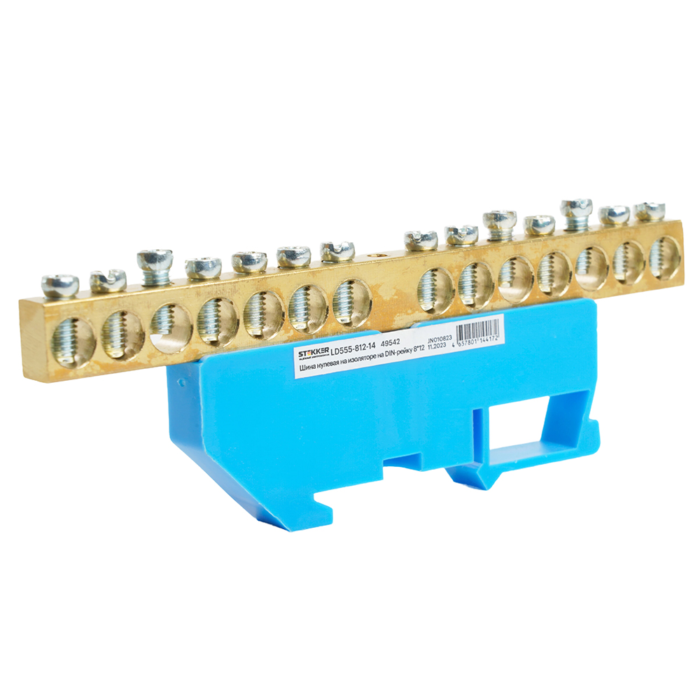 Шина"N" на изоляторе STEKKER 8*12 на DIN-рейку 14 выводов, синий, LD555-812-14