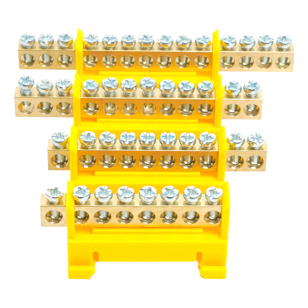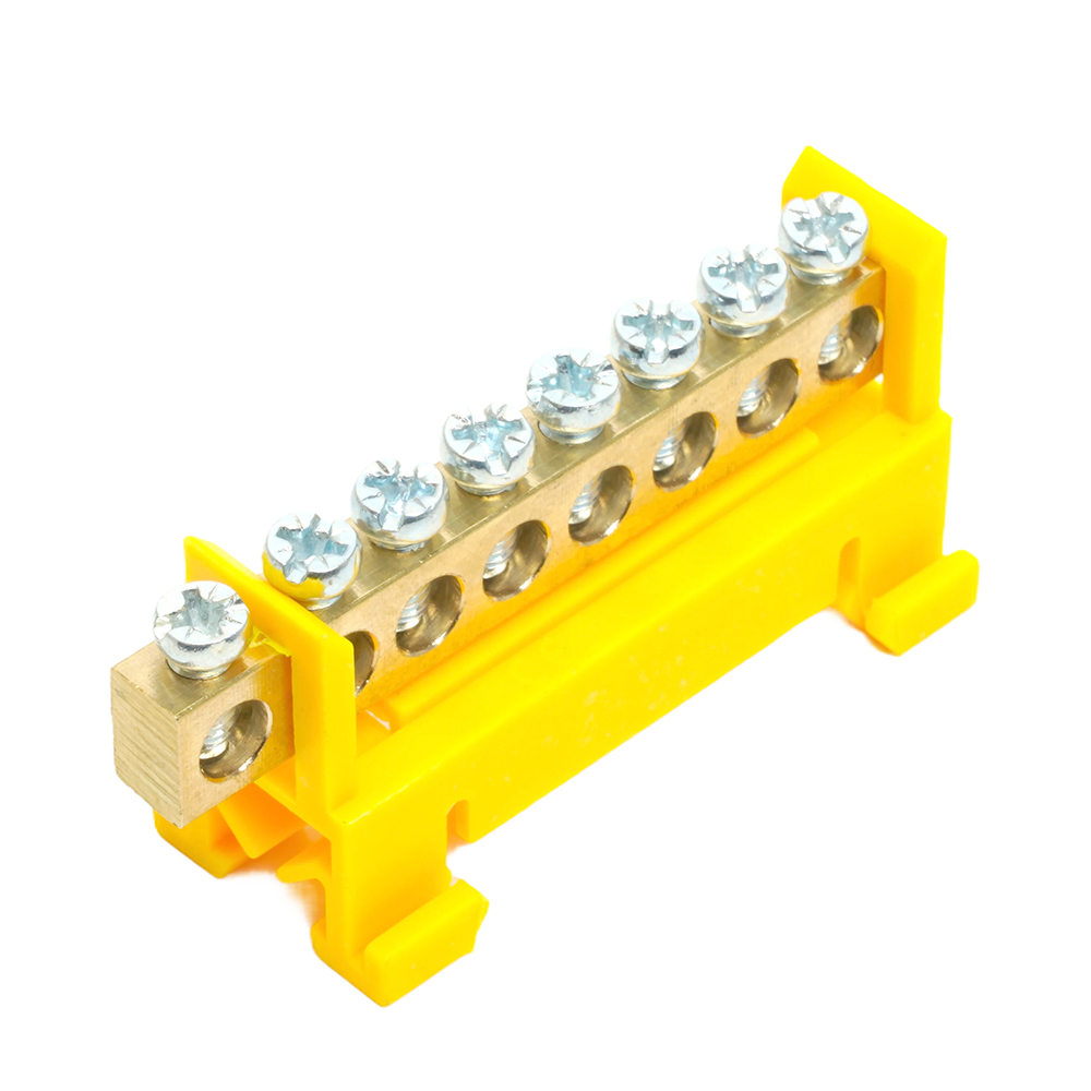 LD556-69- 8 Шина "PE" на изоляторе 6*9 тип "стойка" на DIN-рейку 8 выводов, желтый