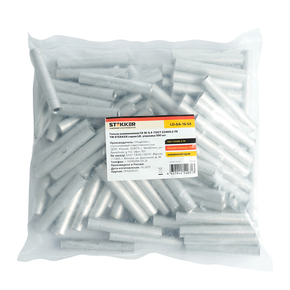 Гильза алюминиевая STEKKER; 16 - ; , алюминий марки АД1М, ,
