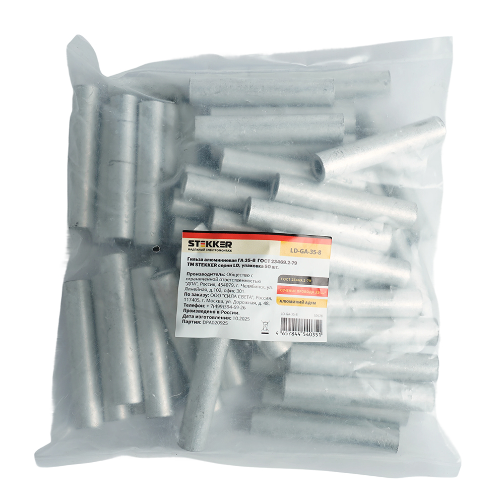 Гильза алюминиевая STEKKER; 35 - ; , алюминий марки АД1М, ,