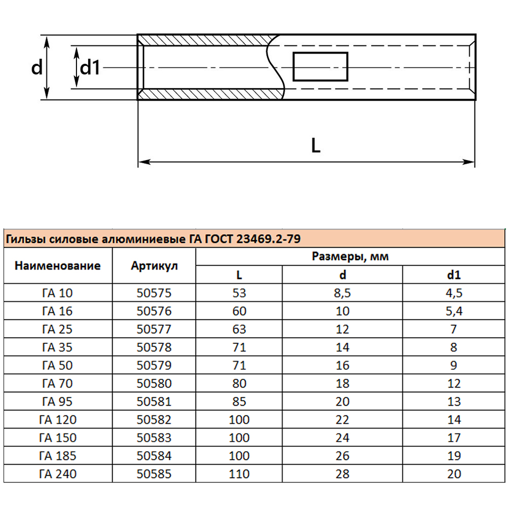 LD-GA-35-8 Гильза алюминиевая ГА 35-8 ГОСТ 23469.2-79