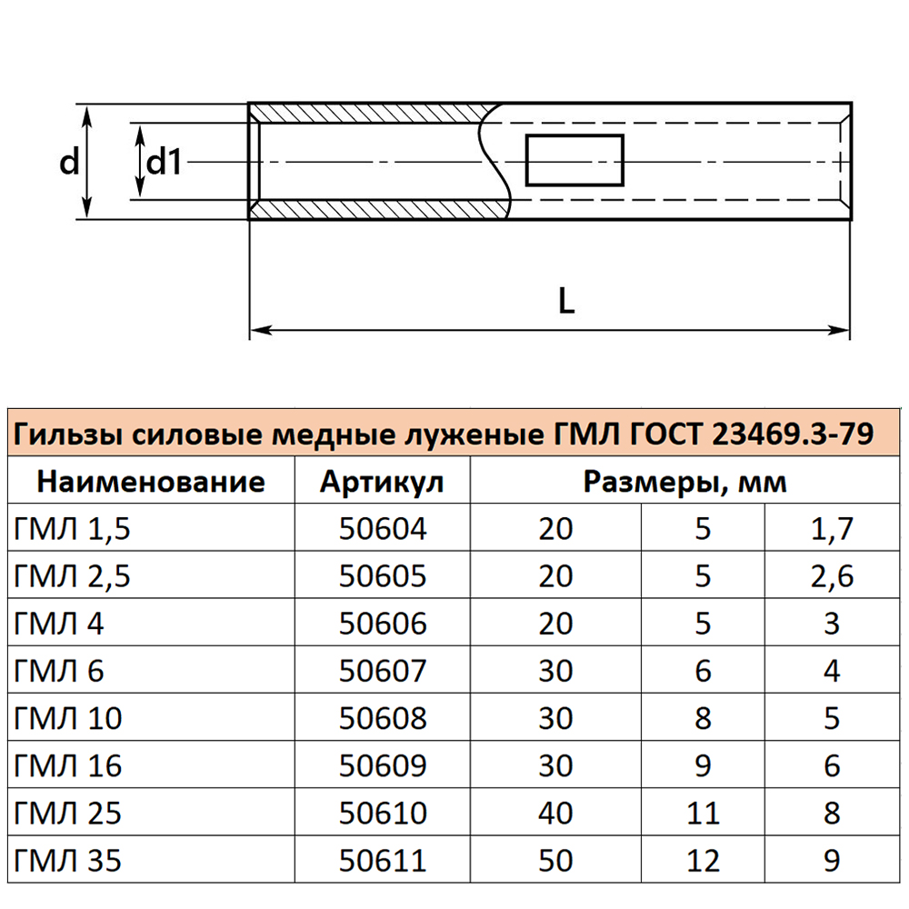 LD-GML-10-5 Гильза медная луженая ГМЛ 10-5 ГОСТ 23469.3-79