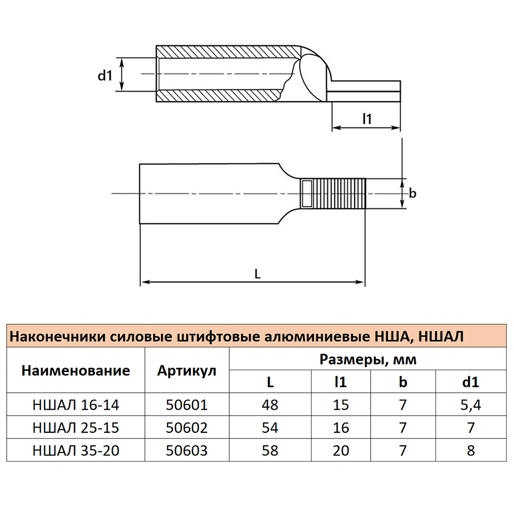 LD-NSHAL-25-15 Наконечник штифтовой алюминиевый луженый НШАЛ 25-15
