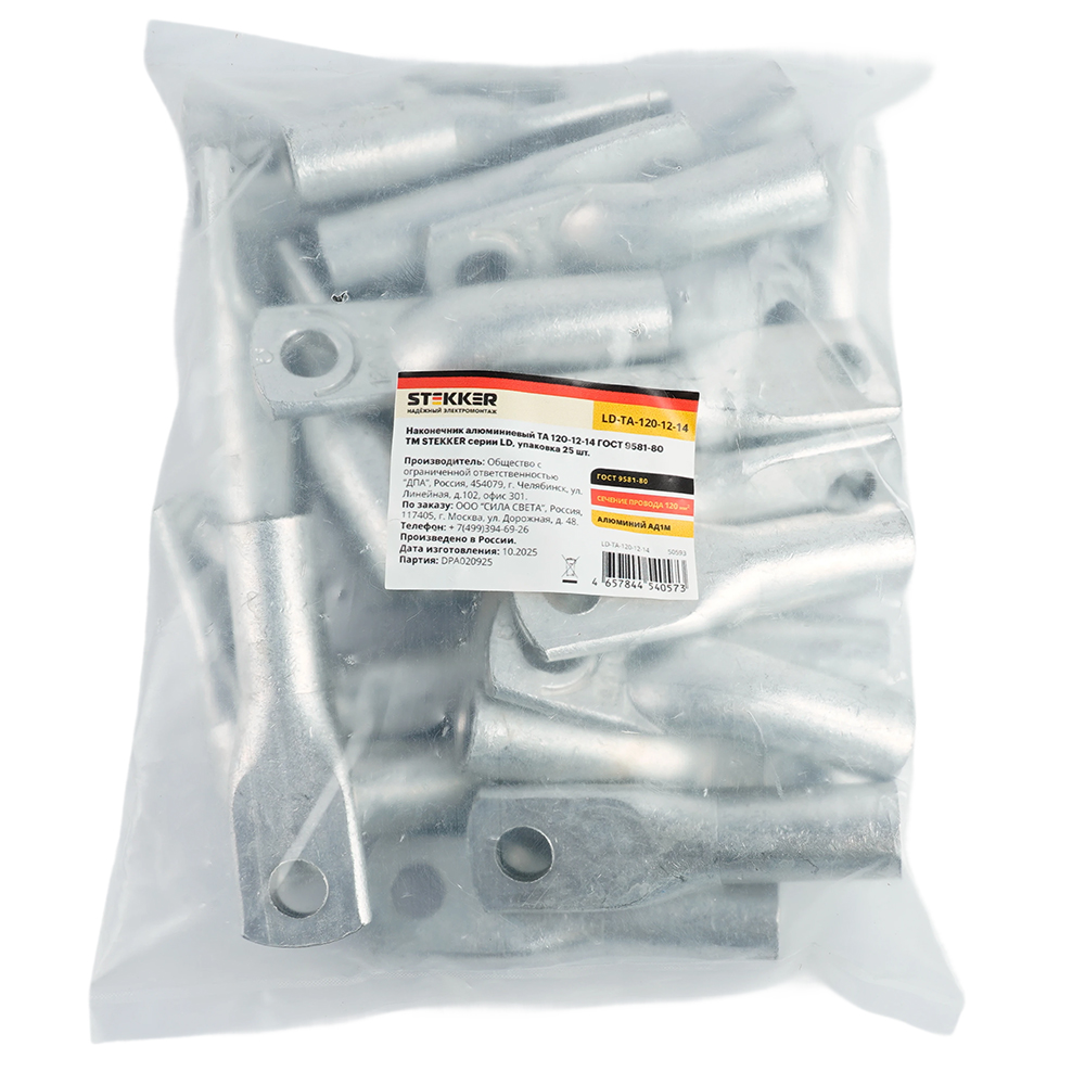 Наконечник алюминиевый STEKKER; М12 120 - ; , алюминий марки АД1М, ,