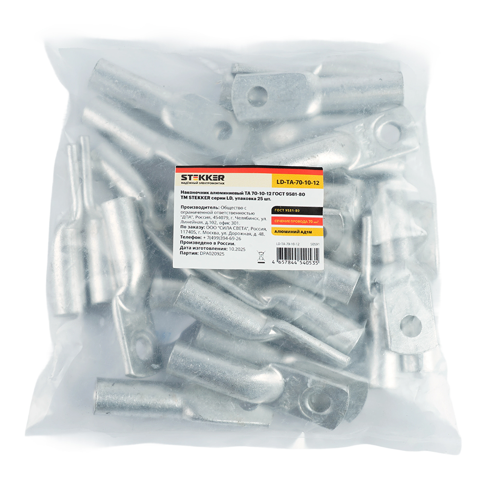 Наконечник алюминиевый STEKKER; М10 70 - ; , алюминий марки АД1М, ,
