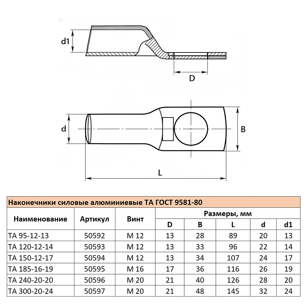 LD-TA-95-12-13 Наконечник алюминиевый ТА 95-12-13 ГОСТ 9581-80