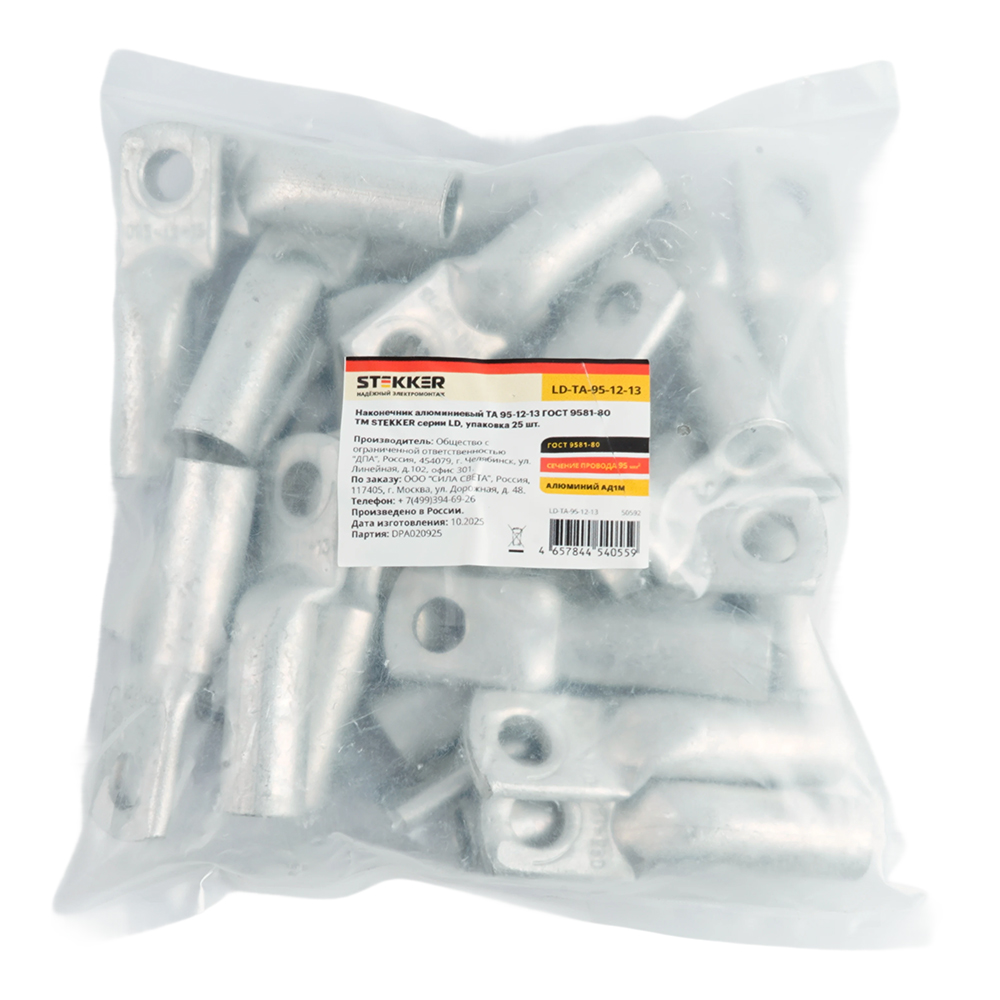 Наконечник алюминиевый STEKKER; М12 95 - ; , алюминий марки АД1М, ,