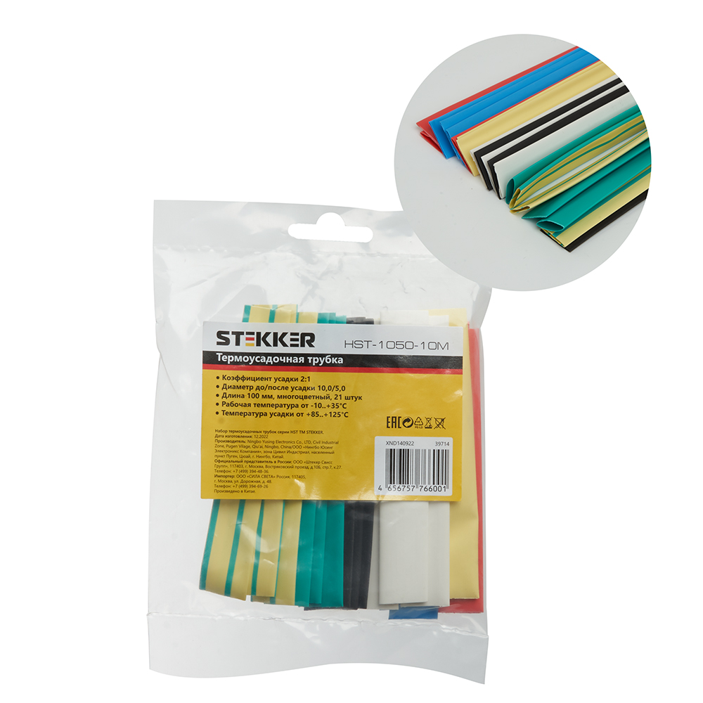 Термоусадочные трубки STEKKER HST-1050-10M, длина 100мм. 21шт. в наборе, цвет: многоцветный . Коэффициент усадки 2:1, диапазон рабочих температур -55..+125°C, температура усадки +85..+125°C, номинальный ток 32А, для проводов сечением мм2.