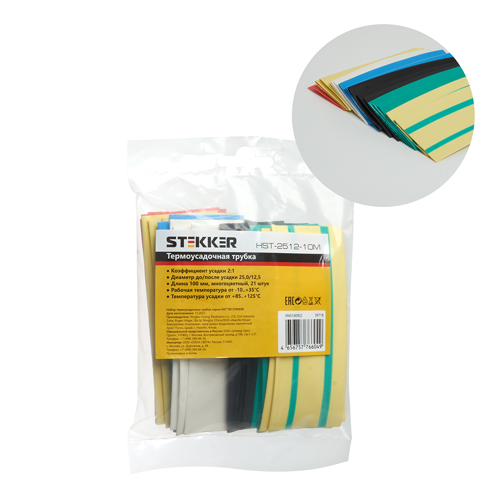 Термоусадочные трубки STEKKER HST-2512-10M, длина 100мм. 21шт. в наборе, цвет: многоцветный . Коэффициент усадки 2:1, диапазон рабочих температур -10..+35°C, температура усадки +85..+125°C, номинальный ток 32А, для проводов сечением мм2.