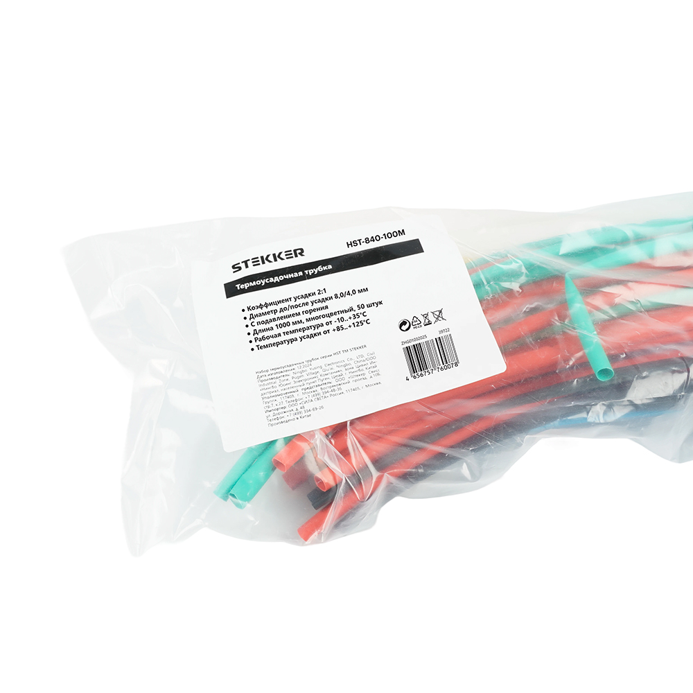 Термоусадочная трубка STEKKER HST-840-100M, длина 100 см., коэф. усадки 2:1, мультиколор