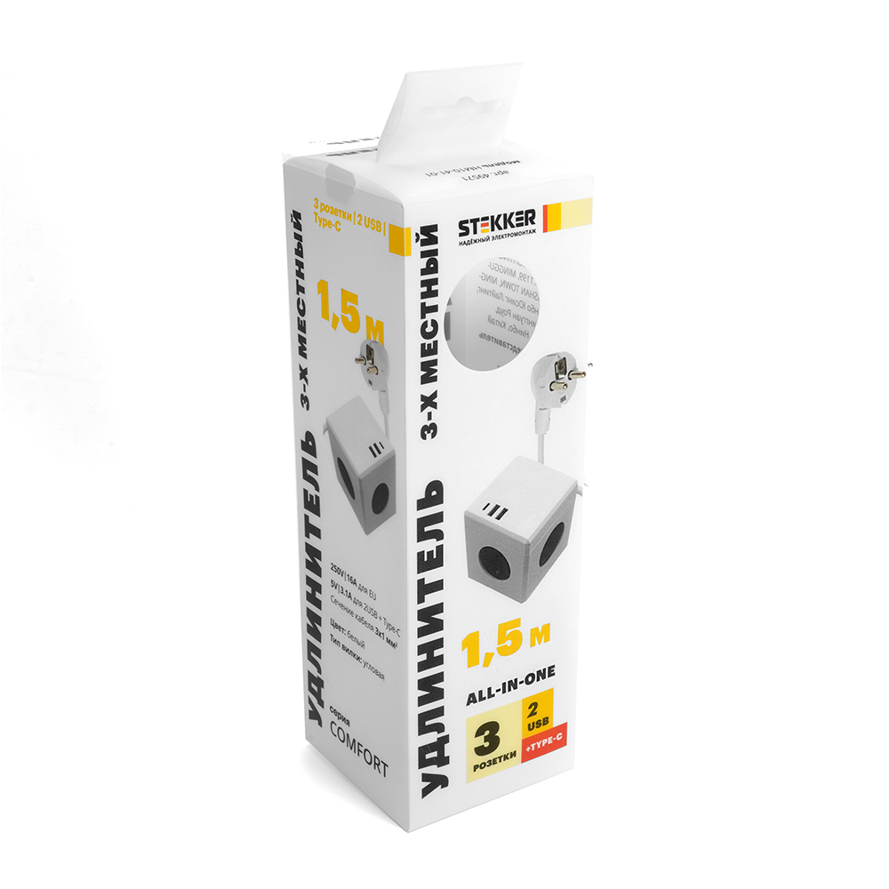 Удлинители STEKKER HM10-41-01 , серия Comfort, цвет белый, длина 1.5 м, количество розеток 3, сталь, сечение кабеля 3x1мм2, тип кабеля ПВС, материал кабеля медь, ток 16А, напряжение 250В, максимальная нагрузка 3500Вт, тип вилки - угловая. Диапазон рабочих температур +1..+35°C, степень защиты IP20, класс защиты от поражения эл. током 1, размеры изделия 75*75*75. Гарантия 1 год.