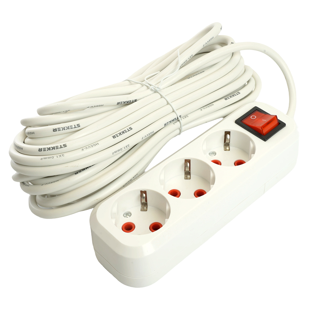 Удлинитель трехместный с/з с выключ. STEKKER HM07-31-10 3x1мм2, 10м, серия Home (У16А-002), белый