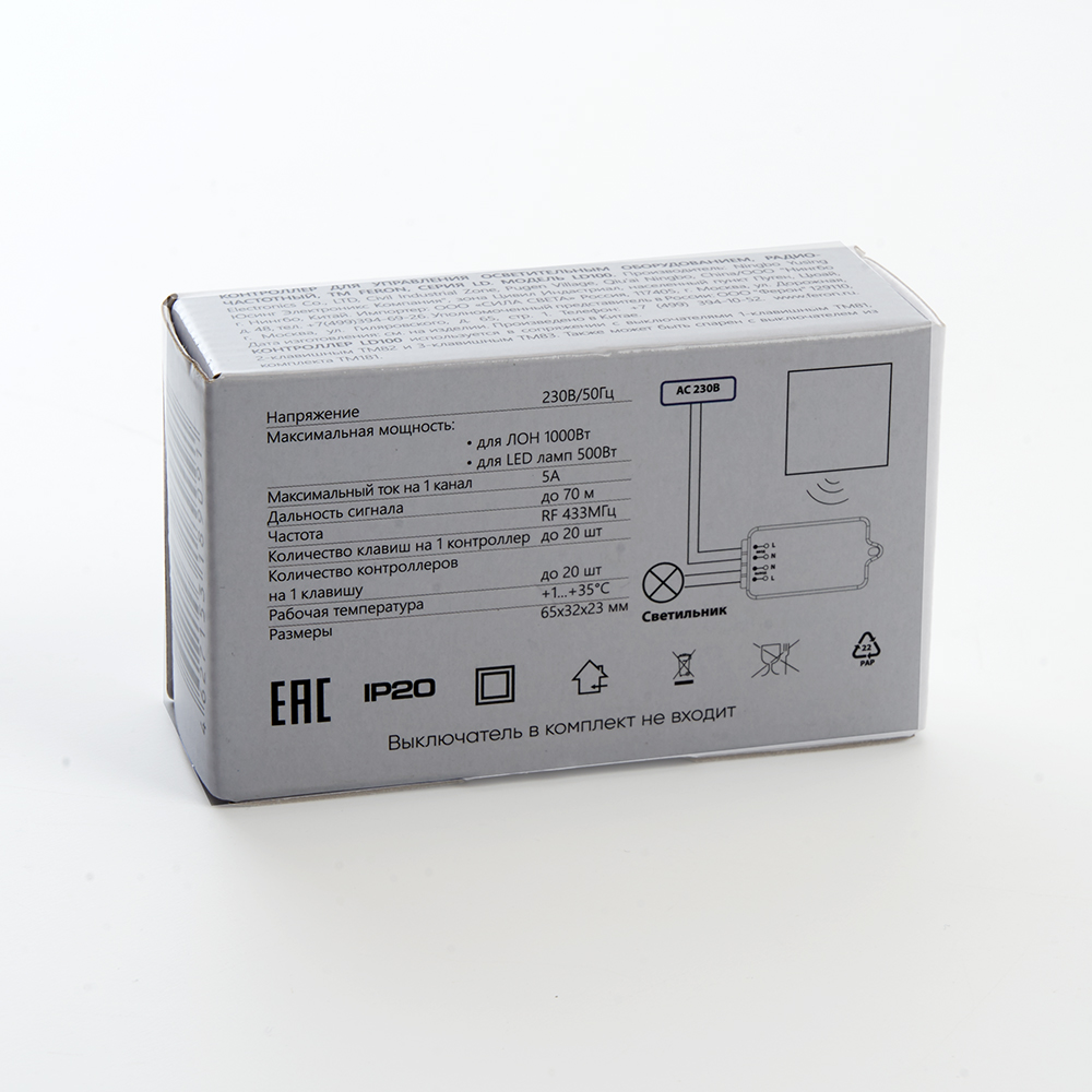 Радиочастотный контроллер для управления с помощью беспроводного выключателя SMART AC230V, 50HZ, LD100
