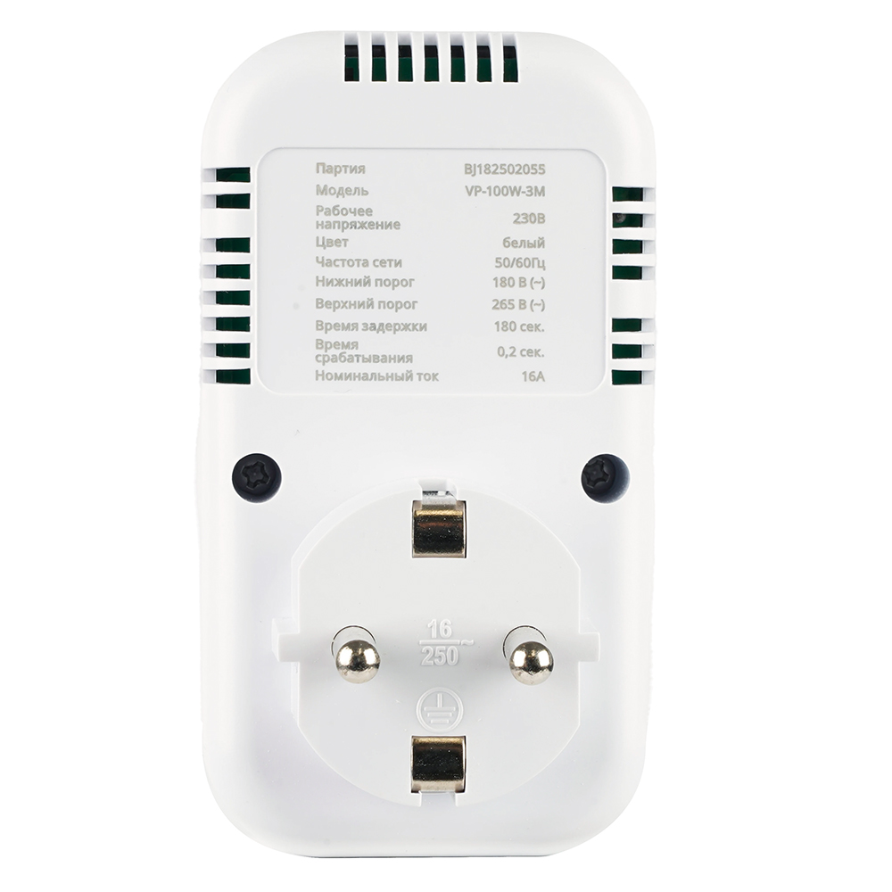 VP-100W-3M Реле напряжения для розетки 230В, 16A,белый