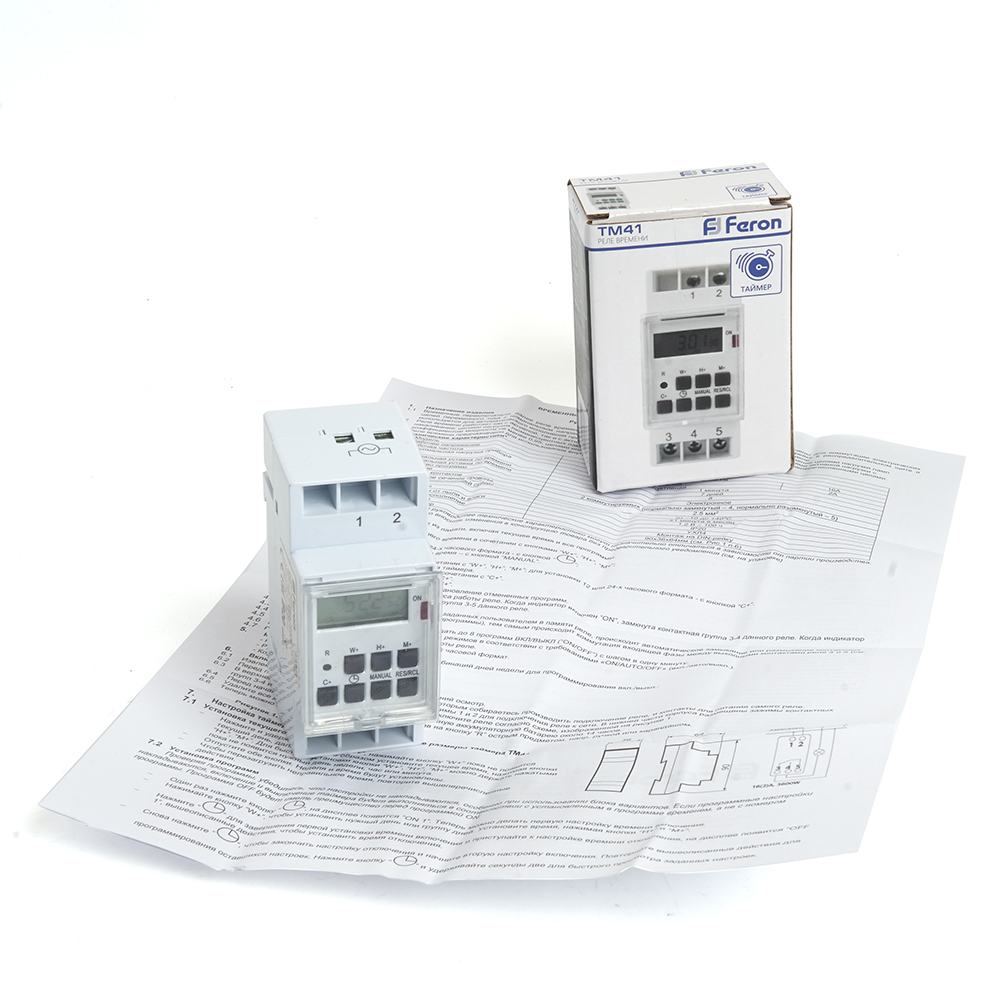 Реле времени (электронный), FERON TM41, IP20, 230V, 3500W/16А цвет белый, 90*36*64мм