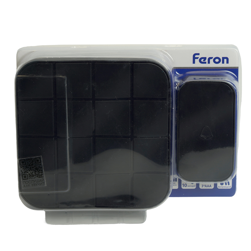 Звонок дверной беспроводной Feron E-378 Электрический 10 мелодий чёрный с питанием от батареек