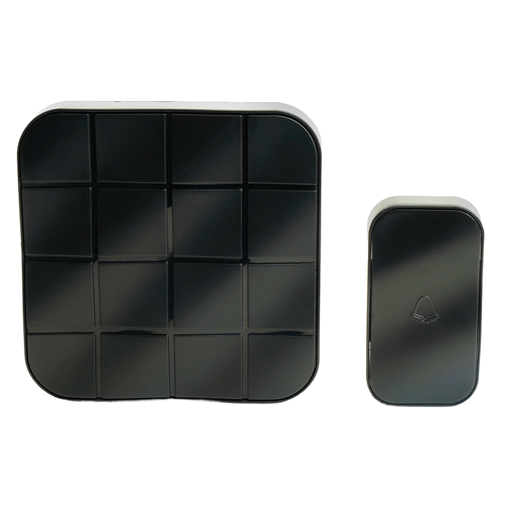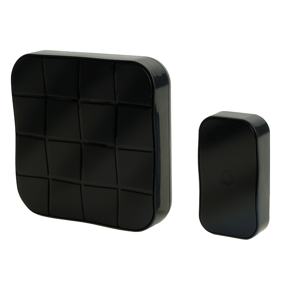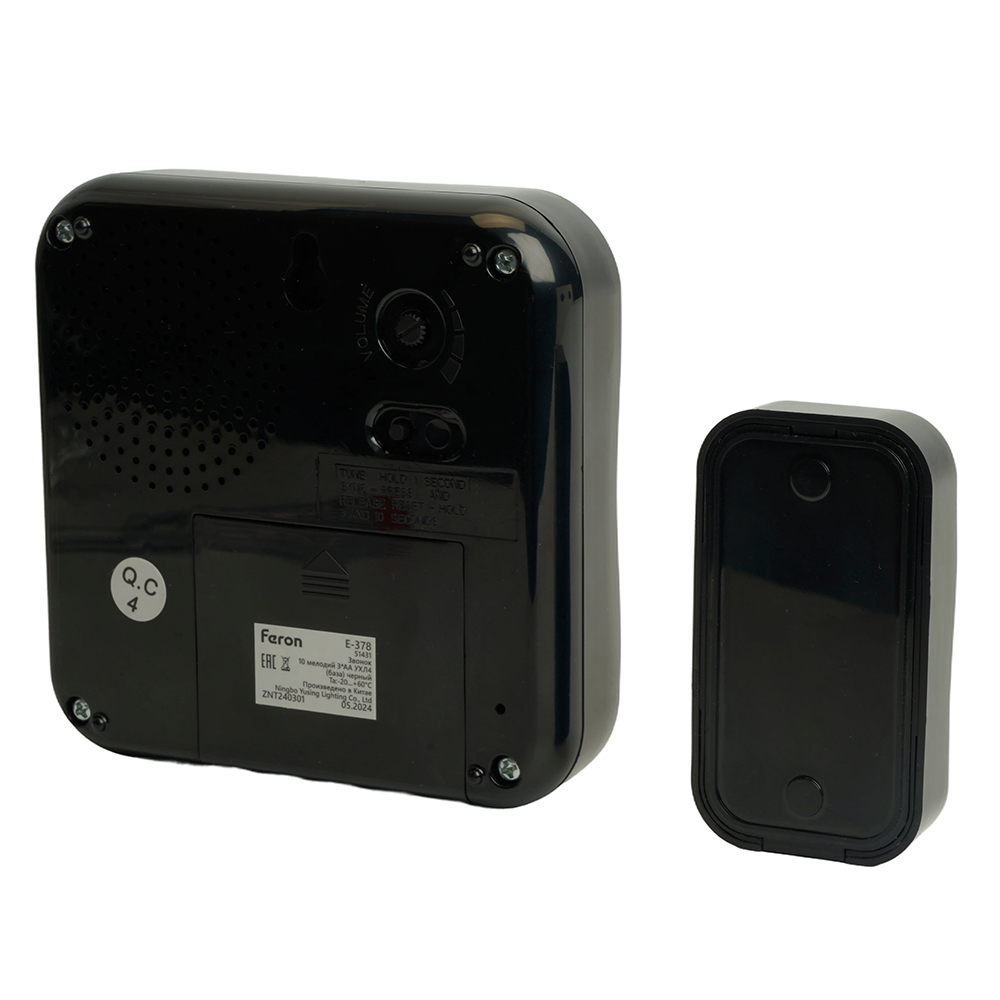 Звонок дверной беспроводной FERON E-378, 10 мелодий, дальность действия 100м, цвет черный, регулировка громкости - есть, шифрование сигнала - есть; 111*111*27 мм, КНОПКА: IP44, 1 * CR2032 (в комплекте) , раб.t -20..+60°С , размер кнопки 43*16*77мм