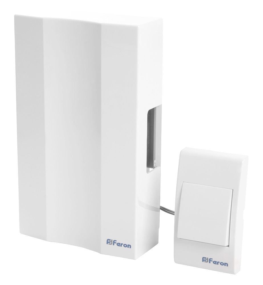 Звонок с кнопкой проводной Feron DB-101 электромеханический белый 230V 162х98х40мм