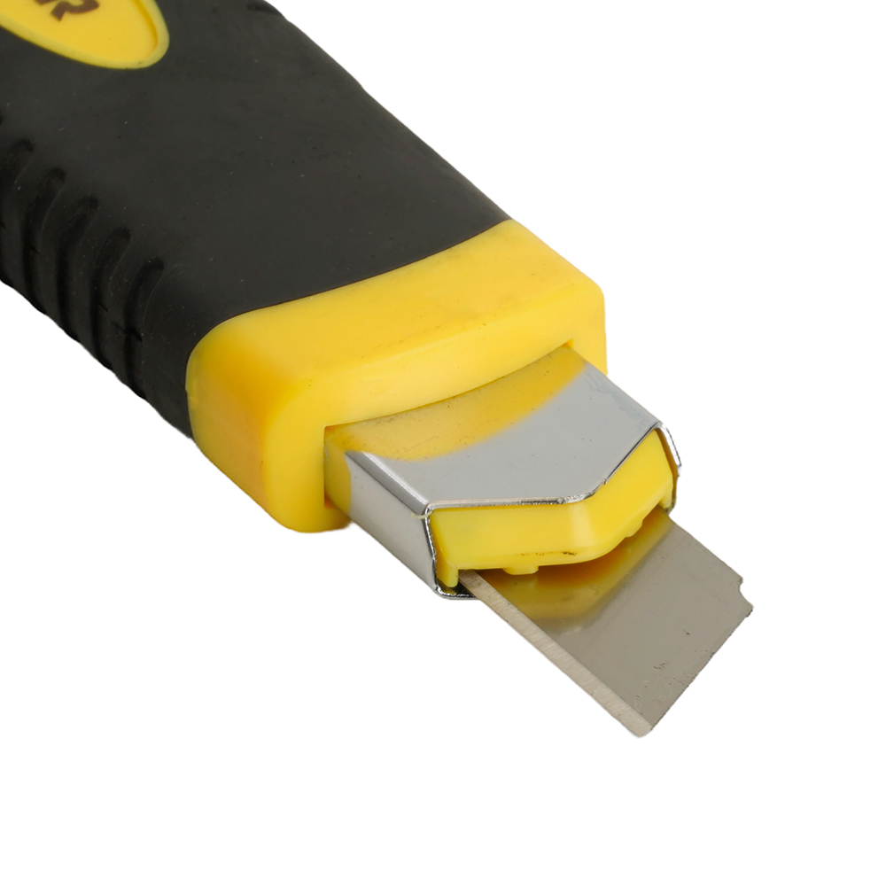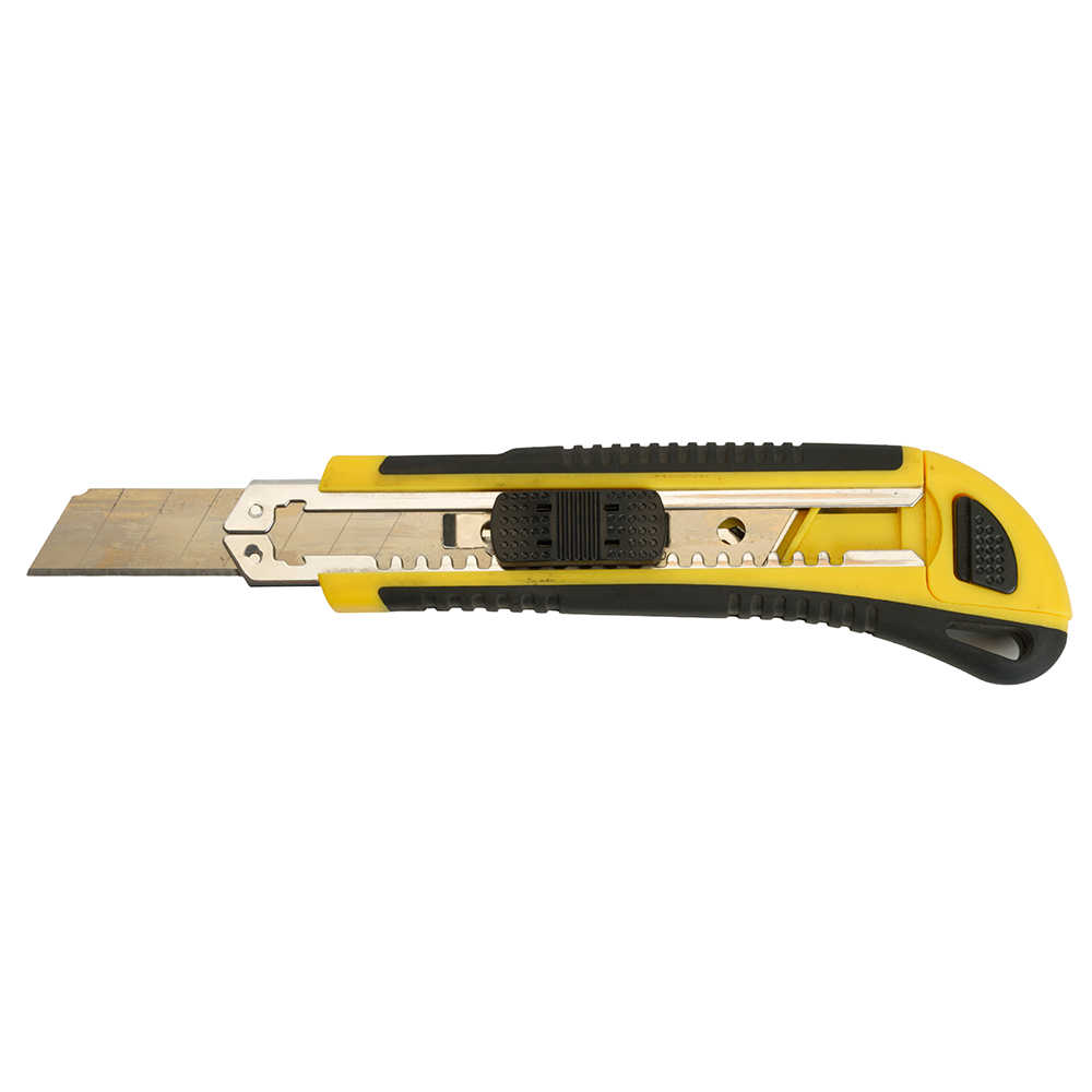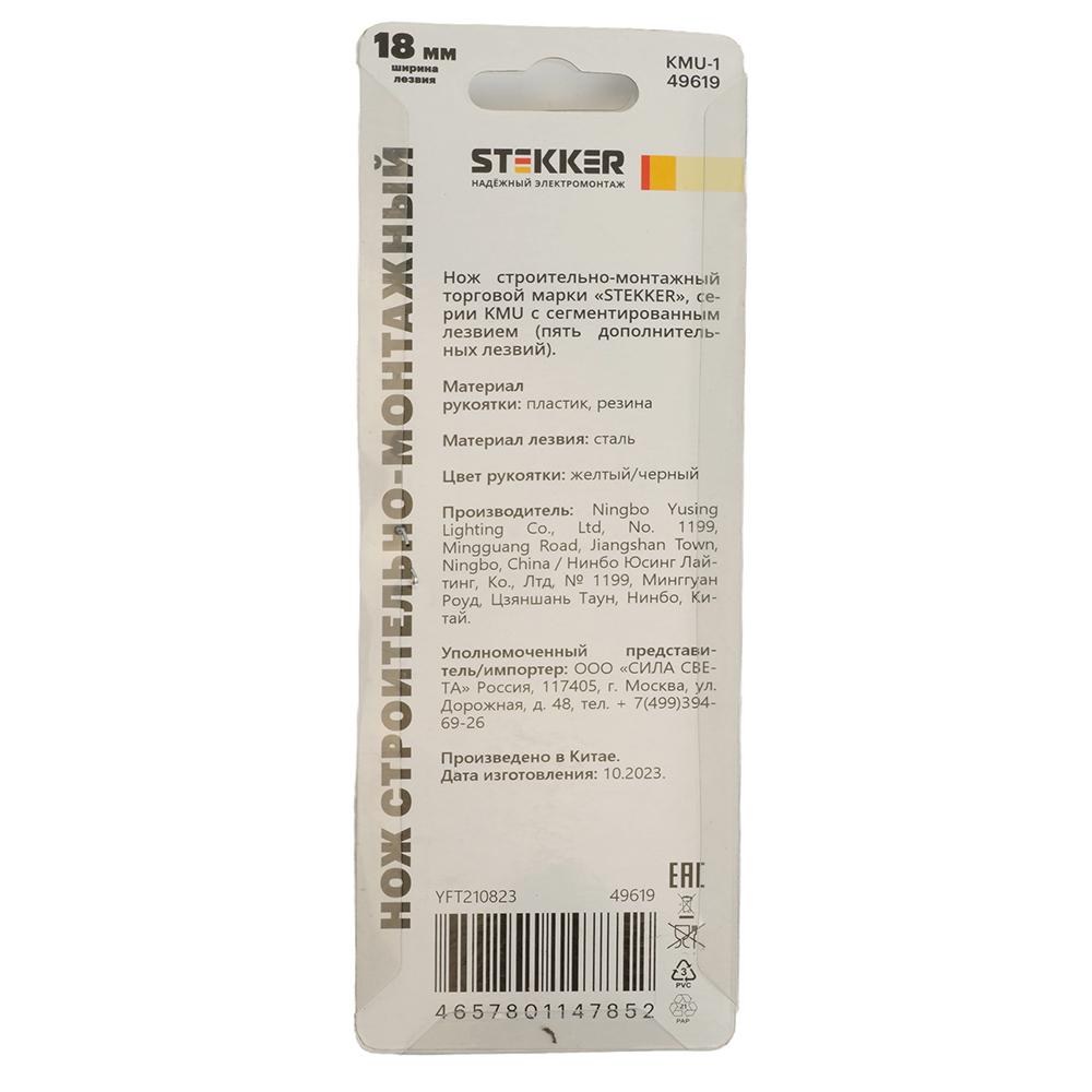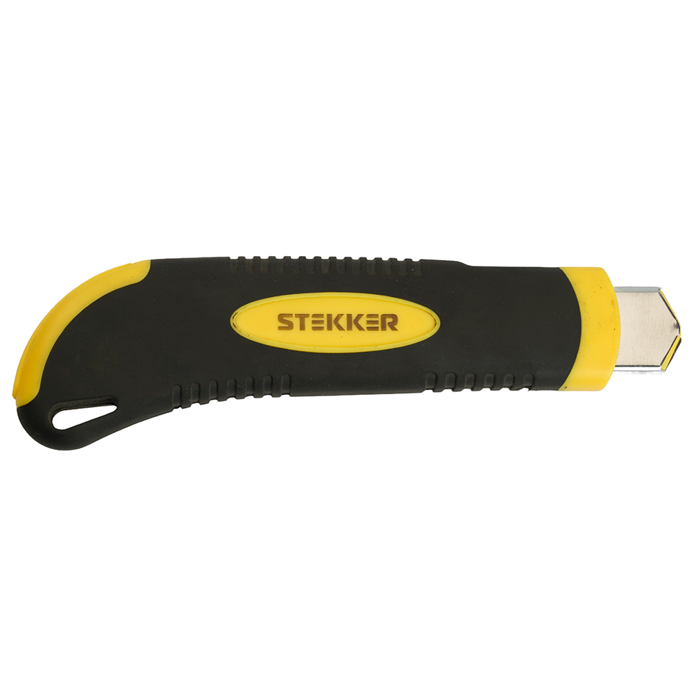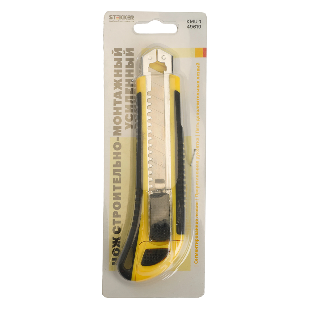 KMU-1 Нож строительно-монтажный Stekker, серии KMU с сегмент.лезвием (5 дополнительных),18 мм, желтый/черный