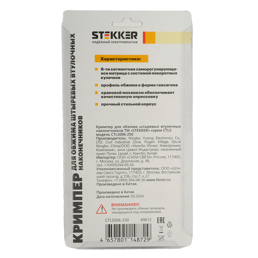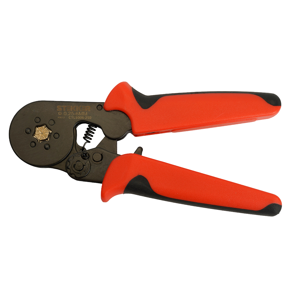 Кримпер STEKKER CTLS006-250 для обжима штыревых втулочных наконечников 0,25-6мм2, 6 сегментов,красный, черный