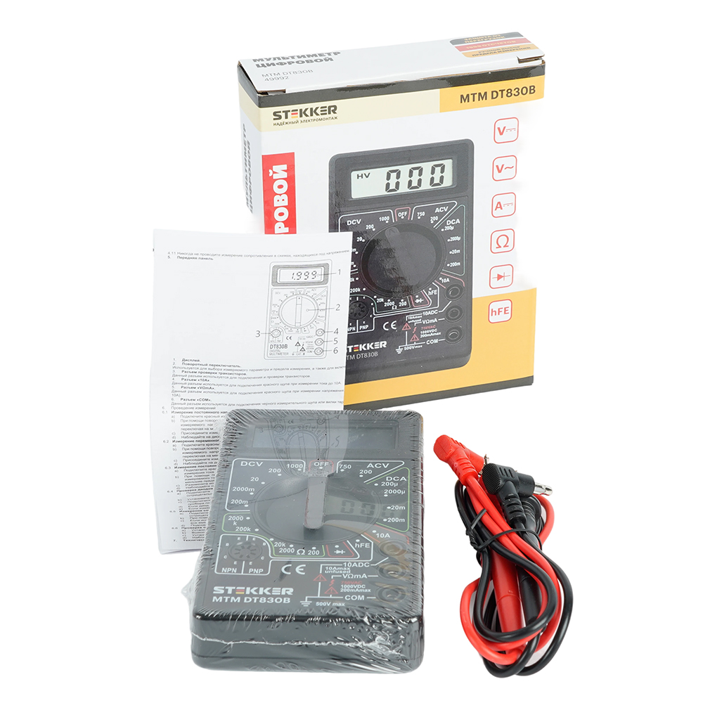 MTM DT830B Мультиметр цифровой, портативный,1999 отсчетов, батарея крона, ручная регулировка, черный, TM STEKKER