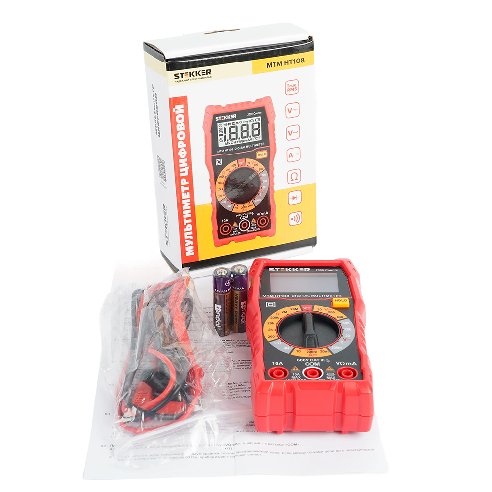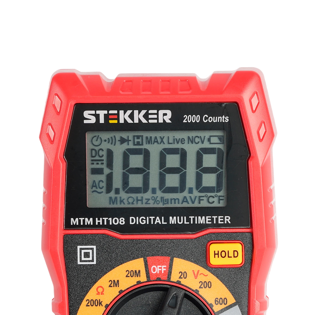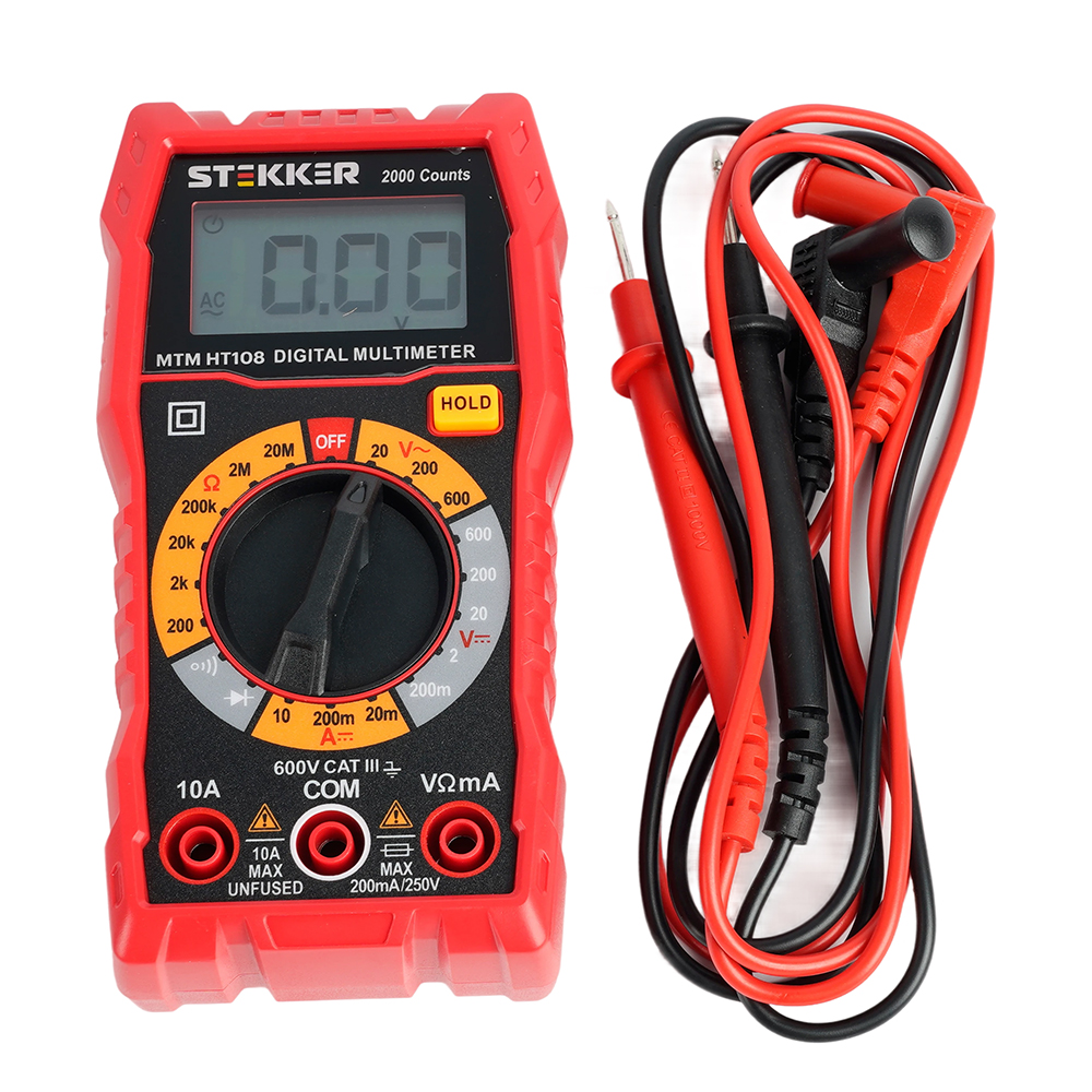 MTM HT108 Мультиметр цифровой, 2000 отсчетов, 2 батареи тип ААА 1,5В, ручная регулировка, красный, TM STEKKER