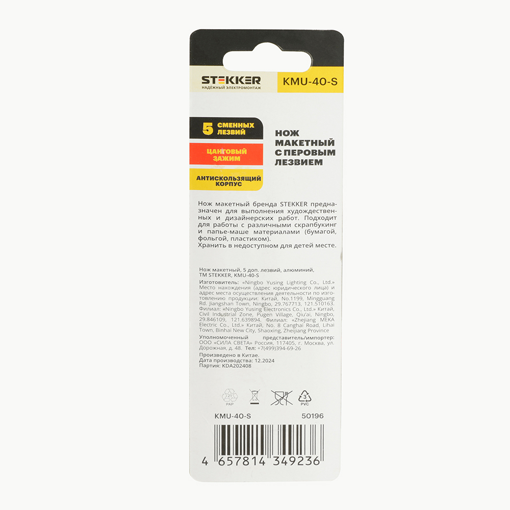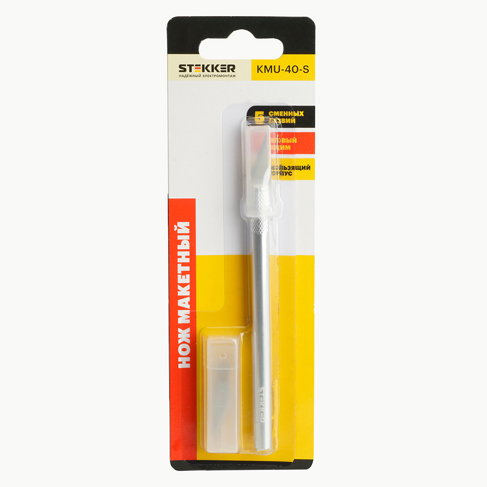 KMU-40-S Нож макетный, 5 доп. лезвий, алюминий, STEKKER