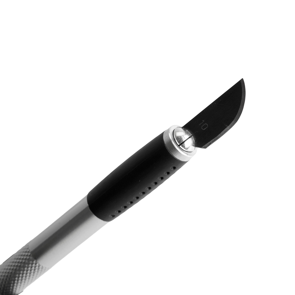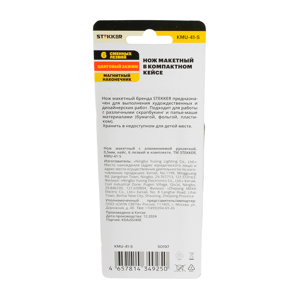 KMU-41-S Нож макетный с алюминиевой рукояткой, 0,5 мм, кейс, 6 лезвий в комплекте, STEKKER