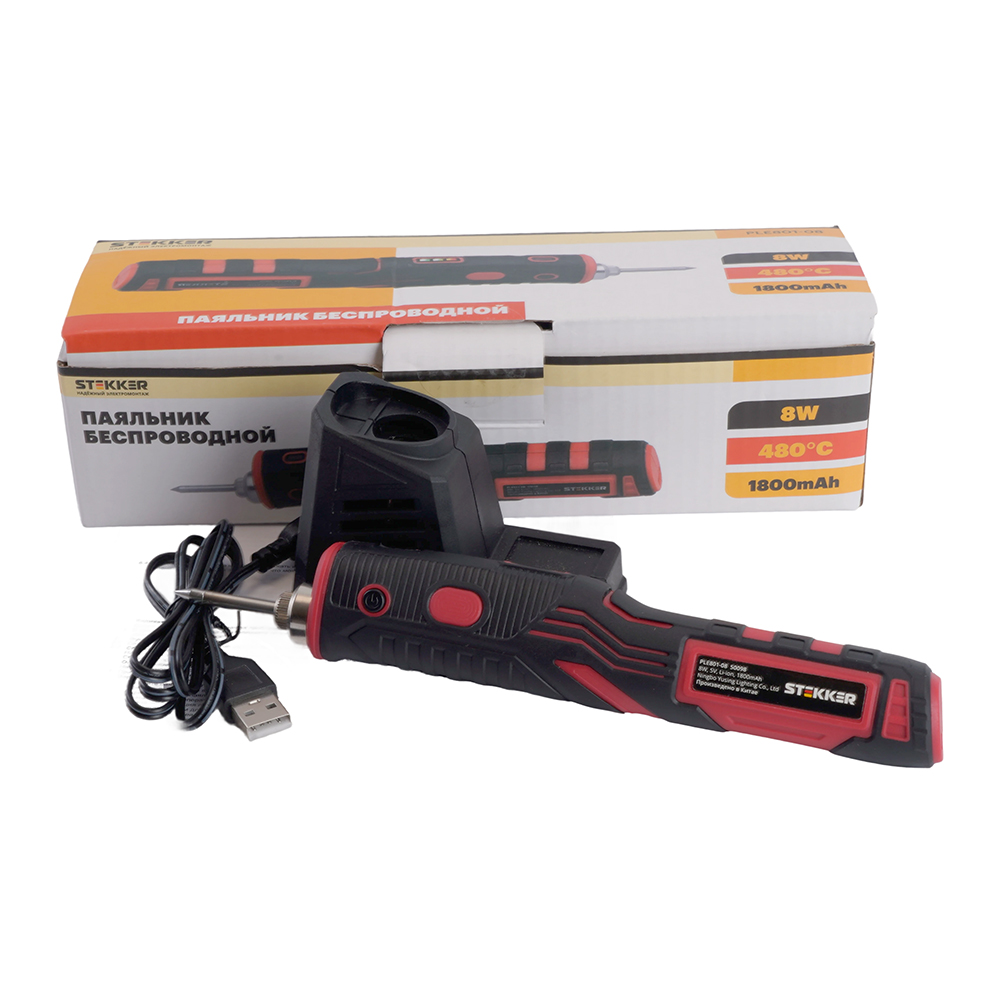 PLE801-08 Паяльник беспроводной 8W, нихромовый нагреватель, 1800 mAh, 5В, красный/черный