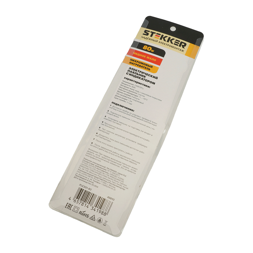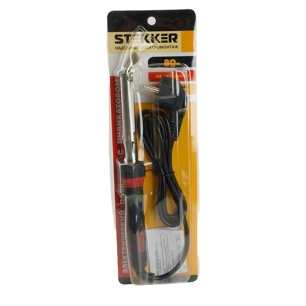 Паяльник с индикатором 80W, нихромовый нагреватель, долговечное жало, 230В STEKKER PLE301-80