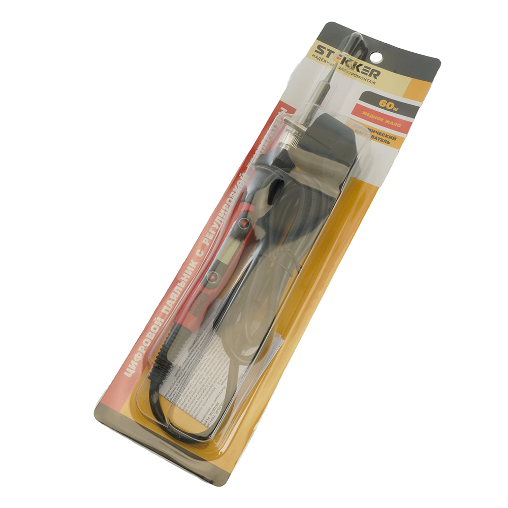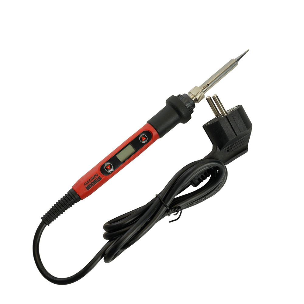 Паяльник с регулировкой температуры цифровой до500С с керам.нагревателем,60Вт,долговечное жало,230В, STEKKER PLE702-60