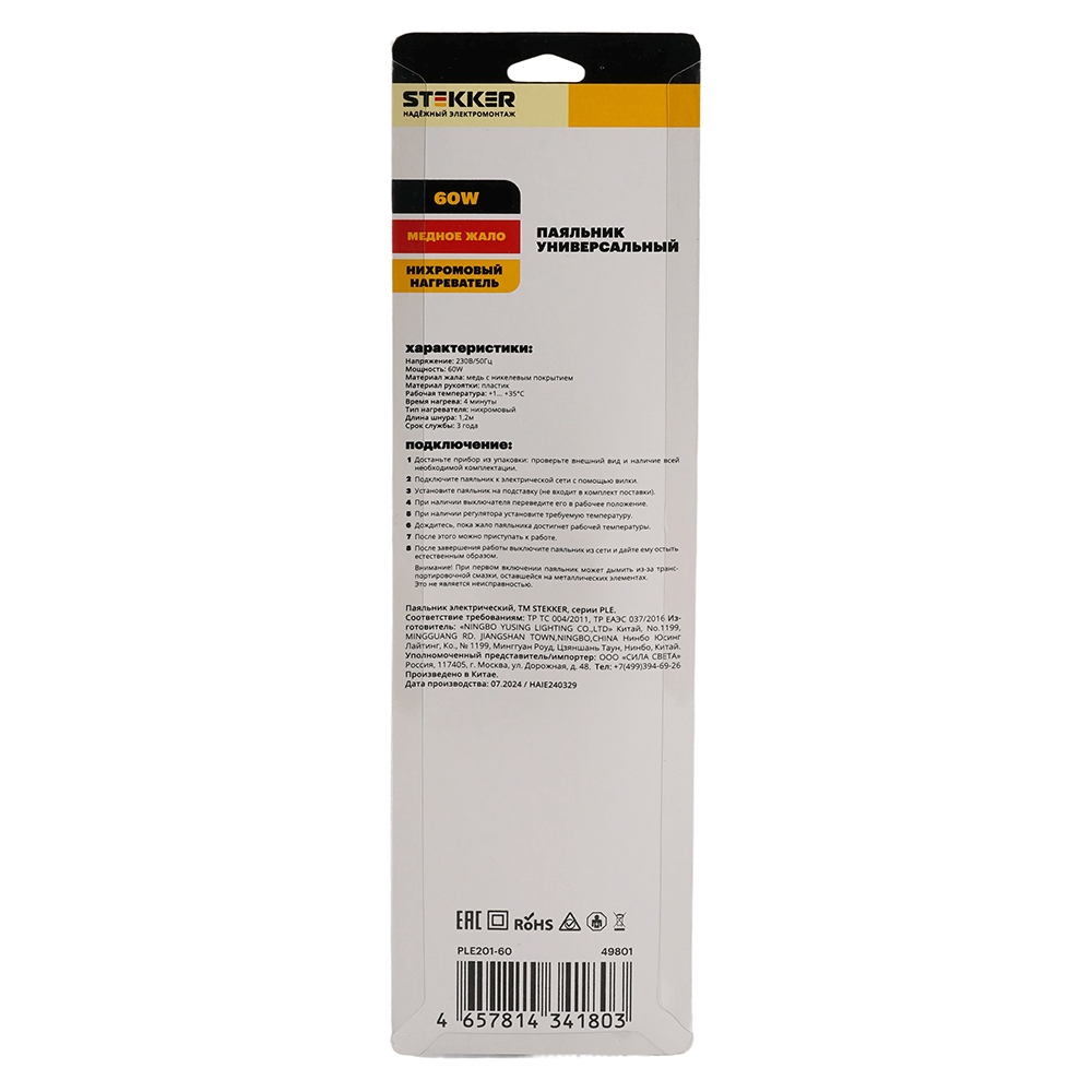 PLE201- 60 Паяльник 60W с кнопкой вкл., нихромовый нагреватель, долговечное жало, 230В