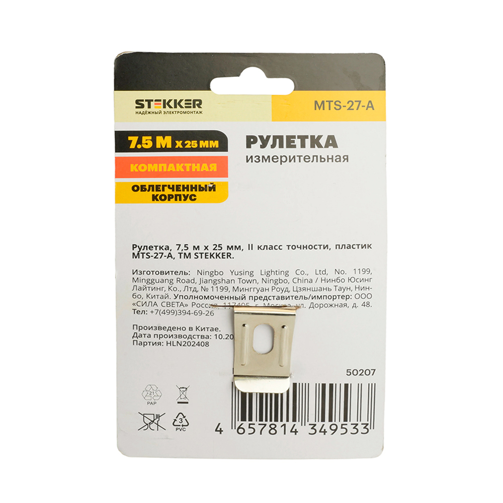 MTS-27-А Рулетка, 7,5 м х 25 мм, II класс точности, пластик