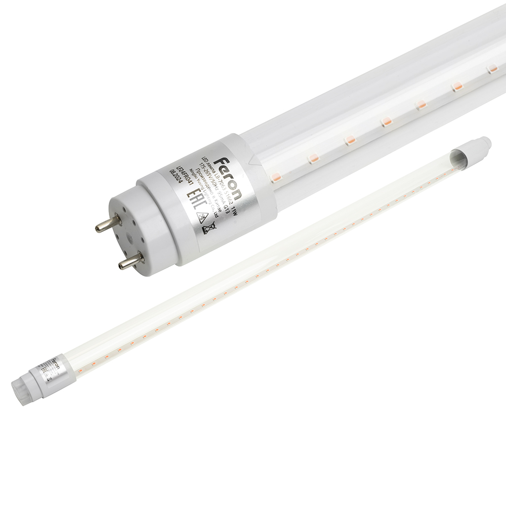 Лампа для растений FERON LB-7063, T8 (фитолампа), 11W 175-265V G13 (красно-синий), рассеиватель прозрачный угол рассеивания 220°, корпус стекло, 600*26мм