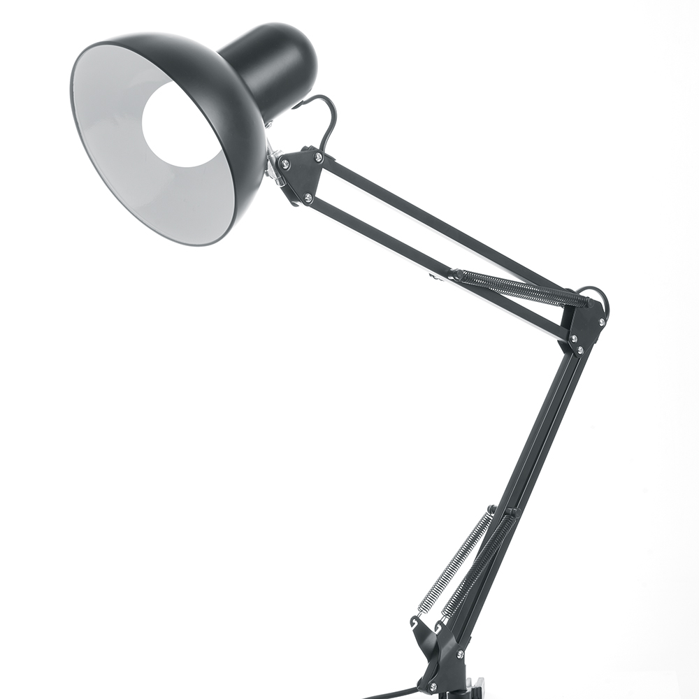 Светильник настольный, складной FERON DE1430, черный, 60W, 230V, E27 материал метал, пластик, в комплекте без лампы, 155 плафон*155 плафон*335+335мм