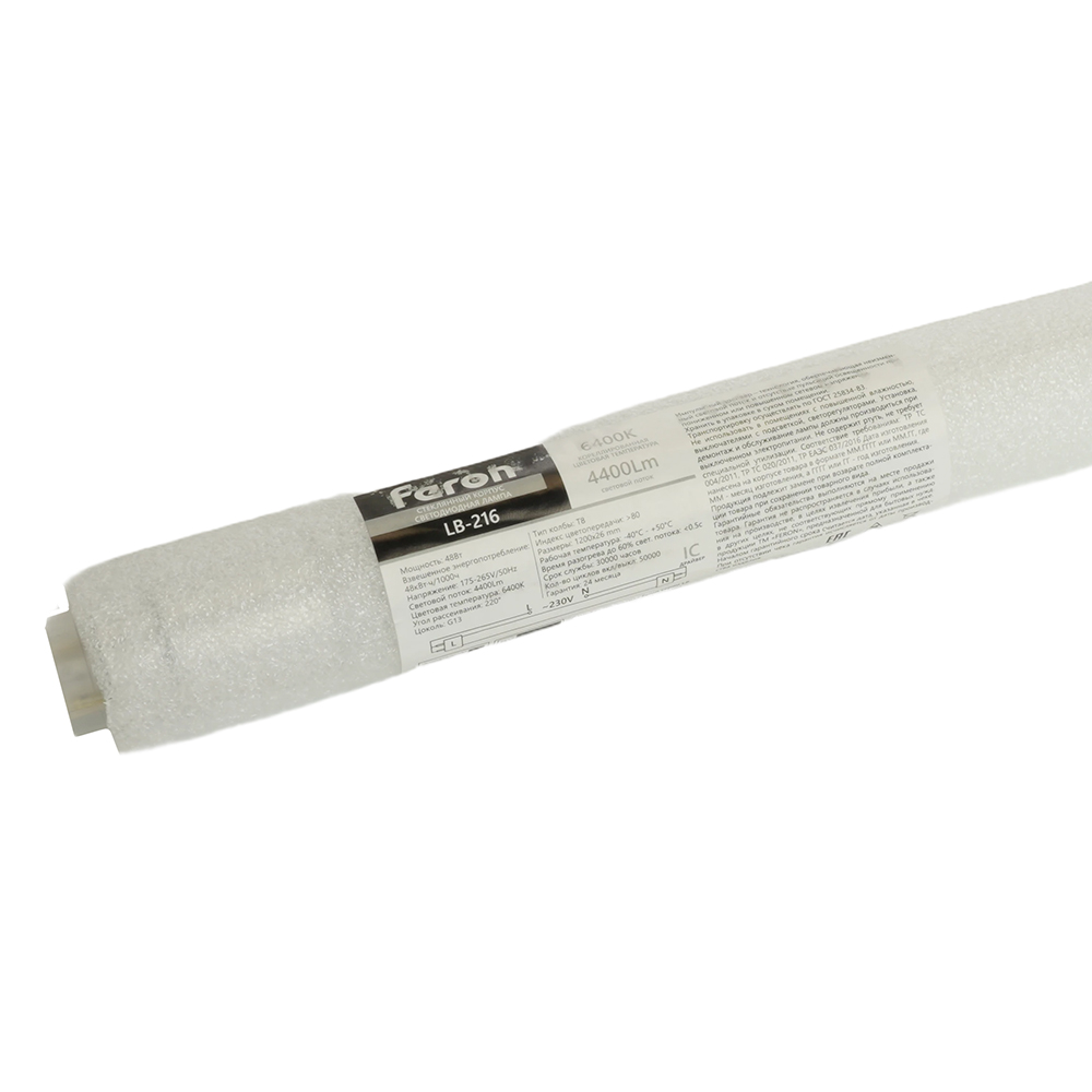 Лампа светодиодная FERON LB-215, T8 (линейная двухцокольная), 36W 175-265V G13 4000К (белый), рассеиватель матовый белый, 3300Lm, угол рассеивания 220°, корпус пластик, 1200*26мм