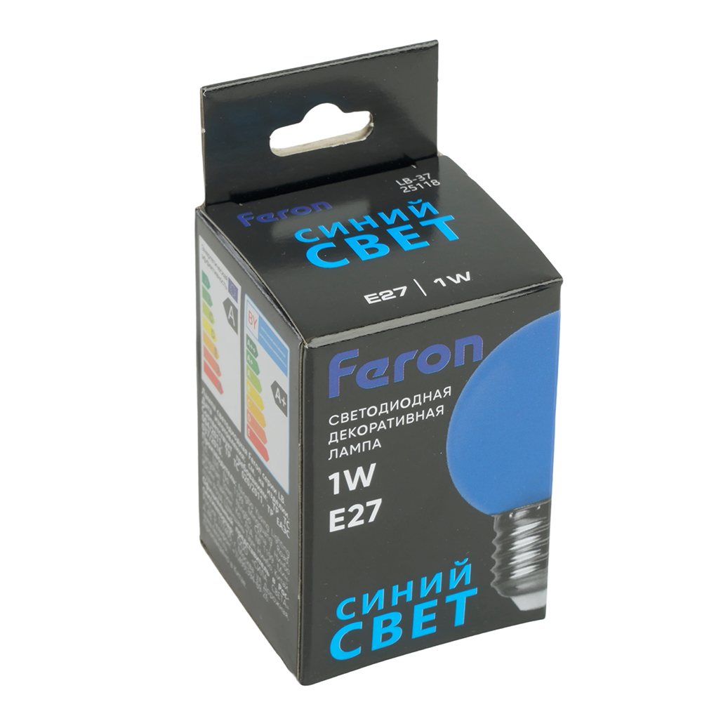 Лампа светодиодная FERON LB-37, G45 (шар), 1W 230V E27 (синий), рассеиватель матовый синий, угол рассеивания 270°, корпус пластик, 70*45мм