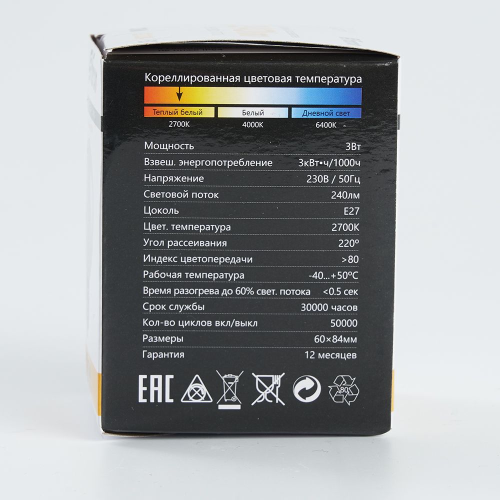 Цветовая температура, K 2700К